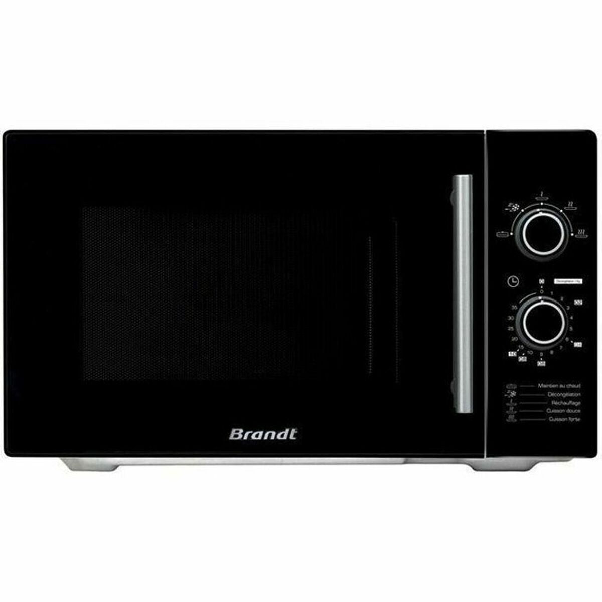 The Brandt microwave with grill in black combines functionality and efficiency for those seeking a practical and versatile kitchen appliance. This microwave features a 26-litre capacity, ideal for preparing or reheating medium portions, suitable for both home use and small spaces. It offers two key power levels: a standard 900 W power for basic cooking and heating, and a 1450 W grill power that allows browning or gratinating dishes with a crispy, even finish, greatly expanding cooking options. The design includes a mechanical control that makes it easy to select between 5 power levels and a timer of up to 35 minutes, providing simple and precise handling to adjust time and mode according to each recipe’s needs. Its interior has a 32 cm glass turntable and support that ensures even heat distribution, optimizing cooking and avoiding cold spots or uneven reheating. It stands out as a freestanding, single-function microwave with a sturdy build and black finish, giving it a modern, discreet look that fits easily into any kitchen style. The combination of these technical features guarantees an efficient daily cooking experience, allowing both quick heating and finishing with the grill for versatile, quality results. This model is a practical and functional choice for those who value a microwave offering reliable performance with intuitive controls and a grill function to extend its range of use.