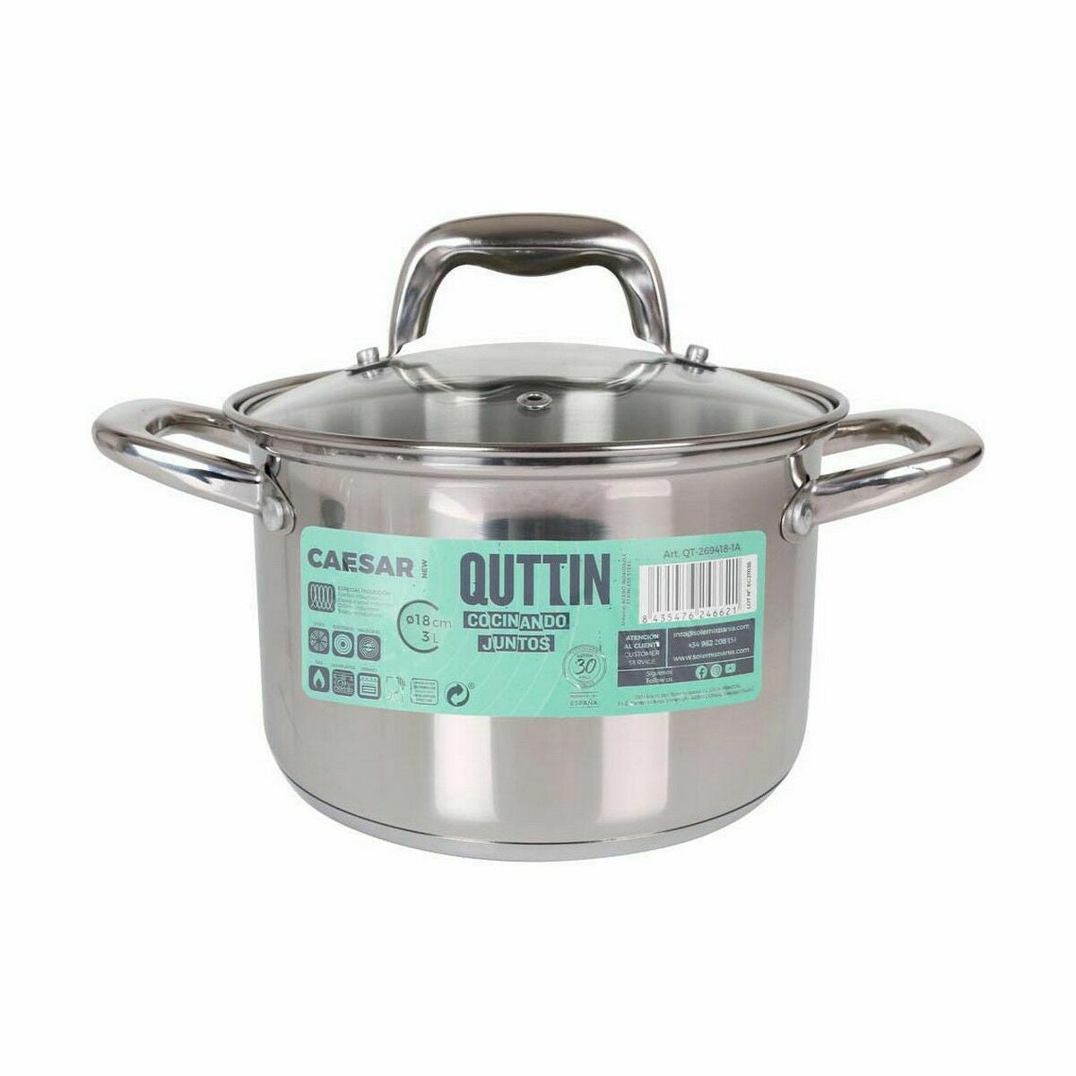 If you like to take care of every detail in your home and own the latest products that will make your life easier, purchase Pot with Glass Lid Quttin Caesar Steel ø 18 x 12,5 cm (6 Units) at the best price.